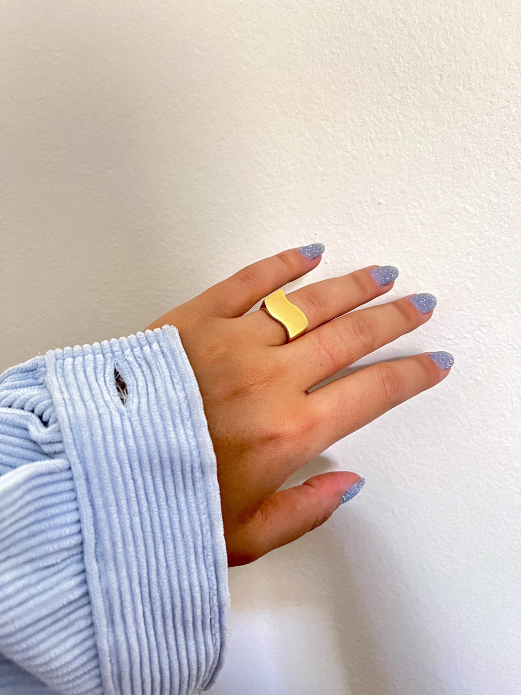 O Anel Wave banhado a ouro é a peça que vai transformar o seu visual! Com um design moderno e um topo liso em formato de onda, ele se destaca como o ponto central do seu look. Além de lindo, é super leve e confortável.