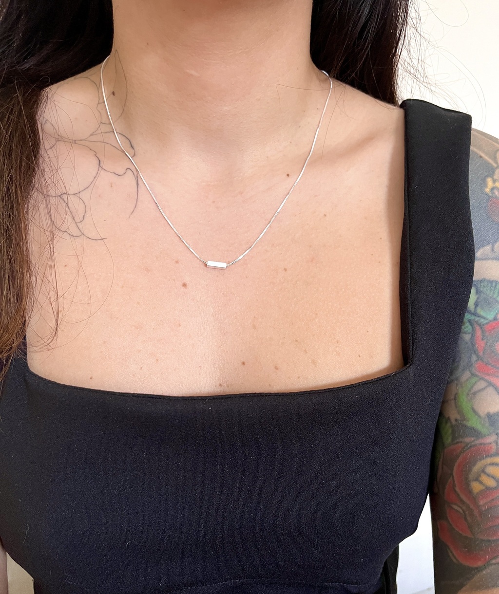 O Colar Básico é a peça que faltava no seu dia a dia! Com uma corrente veneziana delicada e um pingente em formato de palito deitado, ele é banhado a ouro ou prata, trazendo um charme extra ao seu look. Super hipoalergênico, esse colar NÃO contém níquel, garantindo conforto e estilo sem preocupações.