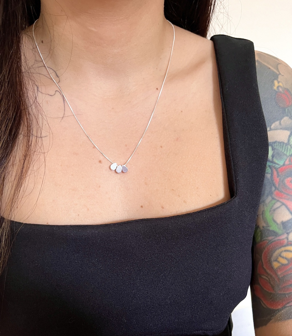 O Colar Gotinhas é a peça que vai dar um charme todo especial ao seu visual! Com uma corrente veneziana delicada e um lindo pingente formado por 3 gotinhas, ele é perfeito para qualquer ocasião. Disponível nas opções banhadas a ouro ou prata, é super hipoalergênico e NÃO contém níquel, garantindo aquele conforto que a gente adora!