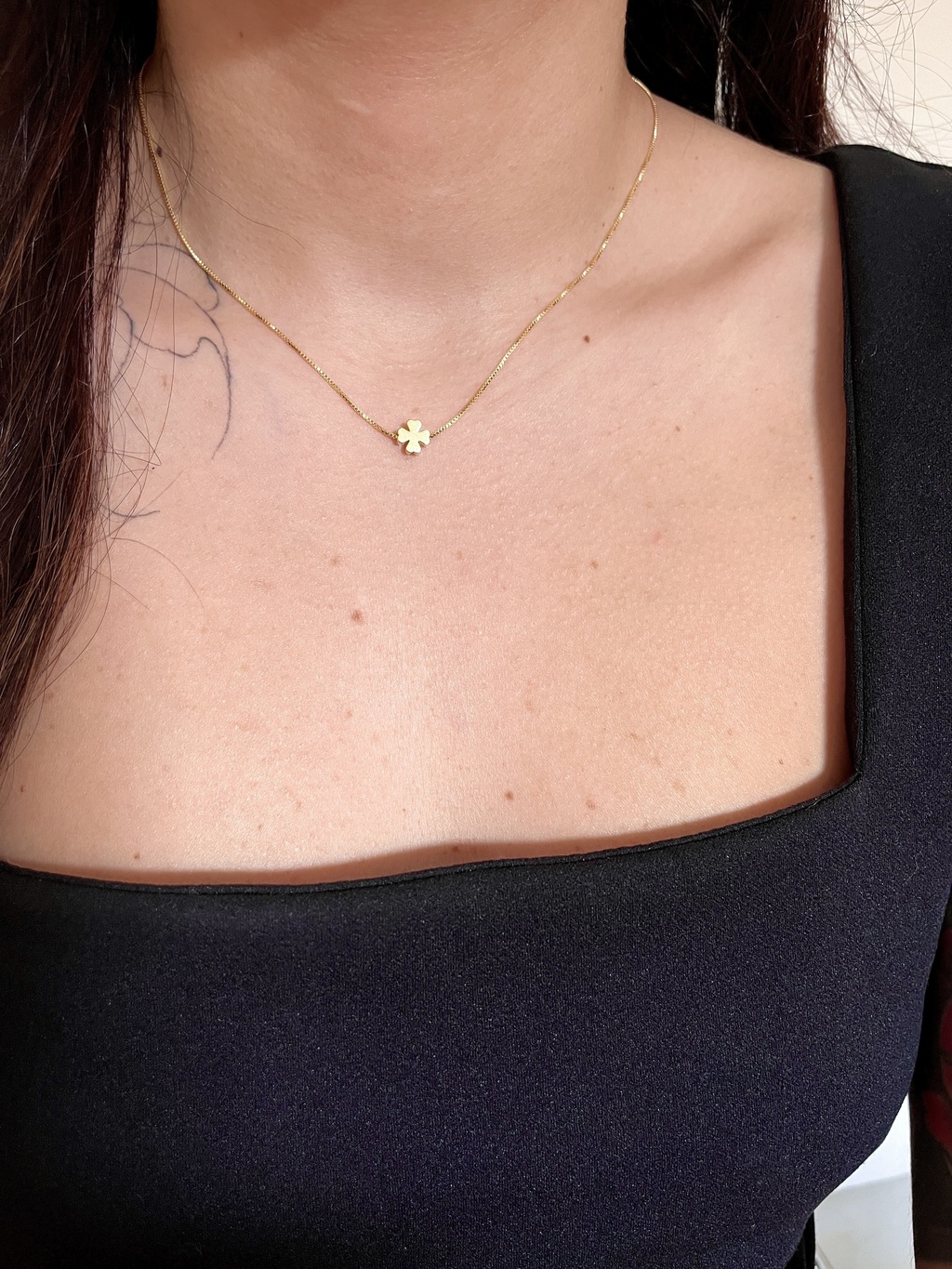 O Colar Trevinho é a escolha perfeita para quem ama um charme a mais no visual! Com sua corrente veneziana e um delicado pingente de trevinho, ele traz sorte e estilo para o seu dia a dia. Disponível em banho de ouro ou prata, essa peça é super hipoalergênica e não contém níquel, garantindo conforto sem irritações.